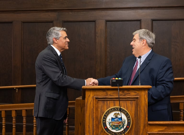 Mr. Catena has been a member of Allegheny County Council since 2017 and has served as its President since 2020. Throughout his tenure, President Catena has been extremely active in legislative and other initiatives relating to a variety of topics, including public safety, economic development, budgeting, property tax appeals and policy, human services, and government efficiency. He has taken a leadership role in reforming the County’s property tax appeal system in the wake of litigation that demonstrated significant errors made by administrative branch staff that disadvantaged taxpayers over a period of years and is a staunch advocate for increased budgetary oversight. Most recently in the context of the County’s Department of Human Services, whose budget encompasses nearly a quarter of the County’s total operating